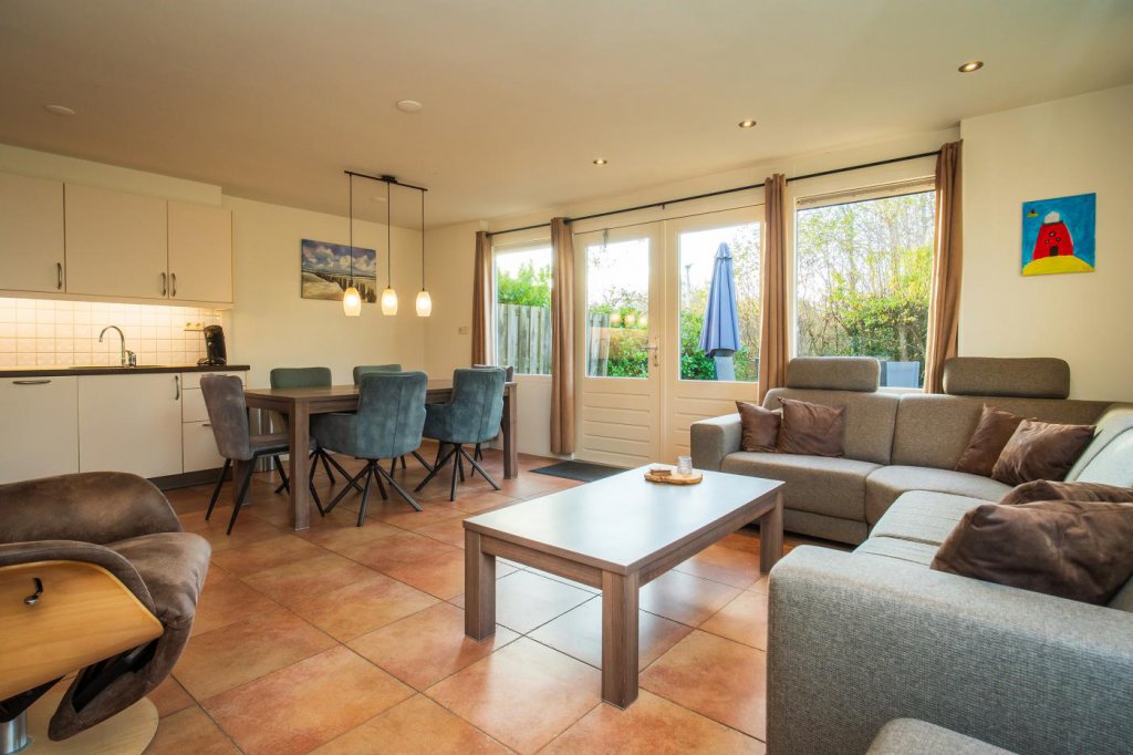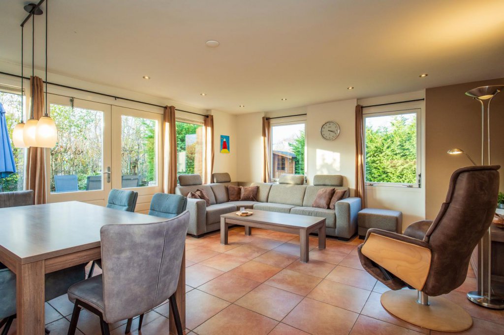 Het hart van de woning wordt gevormd door de lichte en sfeervolle woonkamer. Hier vindt u een prettig zitgedeelte en een apart eetgedeelte, ideaal voor gezellige avonden met familie of vrienden. Dankzij de grote raampartijen en openslaande deuren naar het terras en de tuin, geniet u van veel natuurlijk licht en een directe verbinding met buiten.
