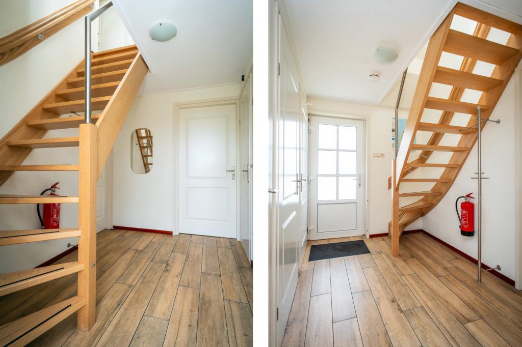 Het geheel heeft de volgende indeling: Entree in hal met de mooie houten trap naar de eerste verdieping. Vanuit de hal is er toegang tot een aparte toiletruimte.