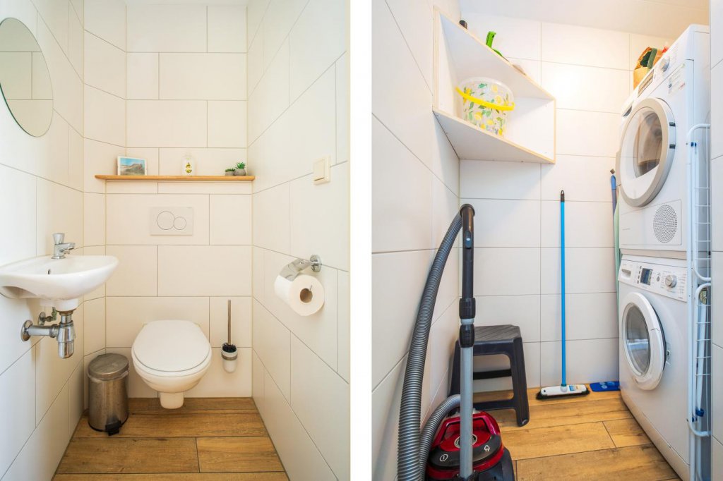 Ook is er vanuit de hal toegang tot de praktische bijkeuken. Deze doet onder andere dienst als opstelplaats voor witgoed. Buitenom is een inpandige berging / technische ruimte bereikbaar.