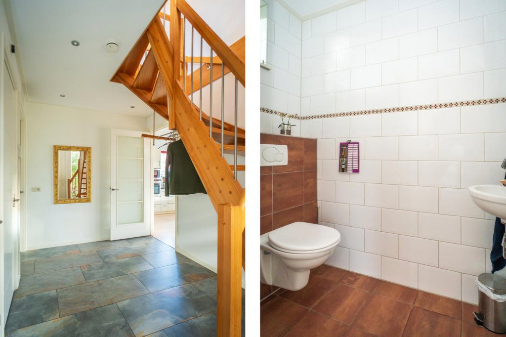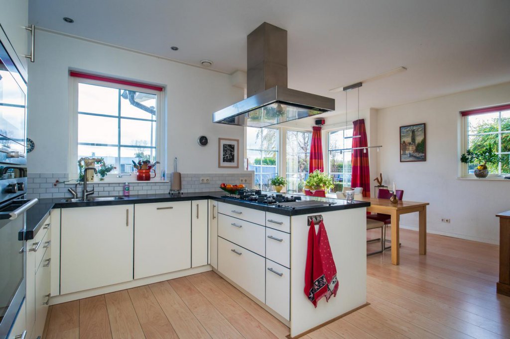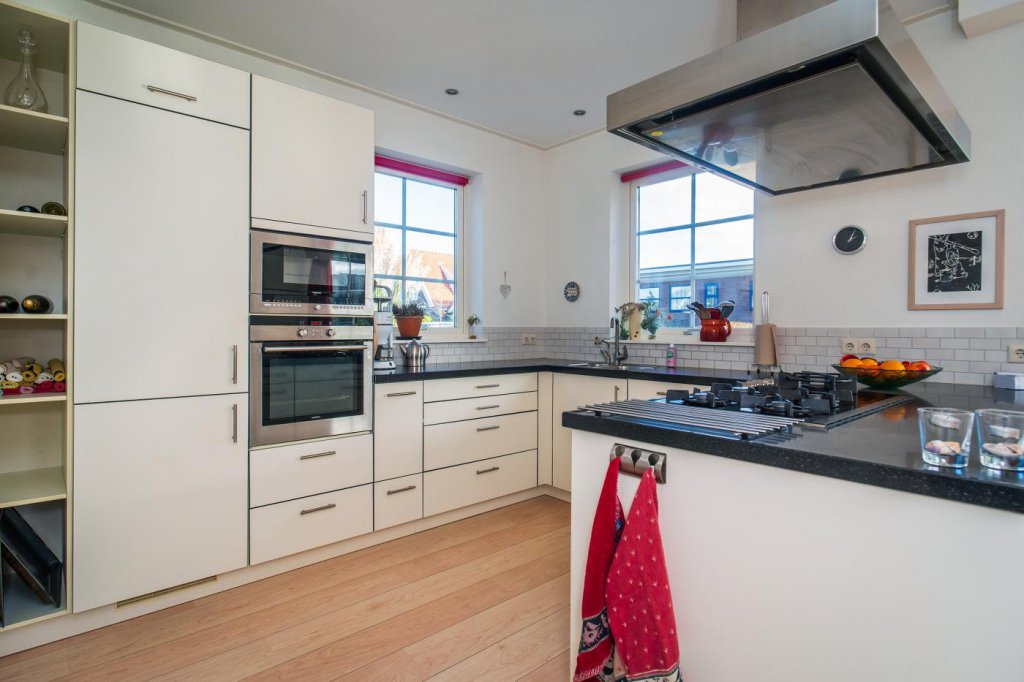 Bij binnenkomst van de woning komt u in de ruim bemeten entree met toilet en trapopgang naar de eerste verdieping. Er is hier voldoende ruimte voor de garderobe. Vanuit de hal is de keuken bereikbaar, een heerlijke en lichte woonkeuken. De vaste keukeninrichting is praktisch en biedt veel kastruimte. Ook beschikt de keuken over diverse inbouwapparatuur (magnetron, oven, vaatwasser, afzuigkap, 5 pits gaskookplaat, nul graden koelkast en quooker).