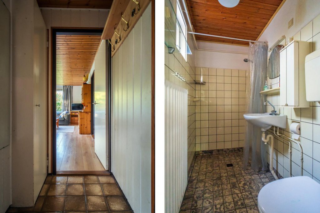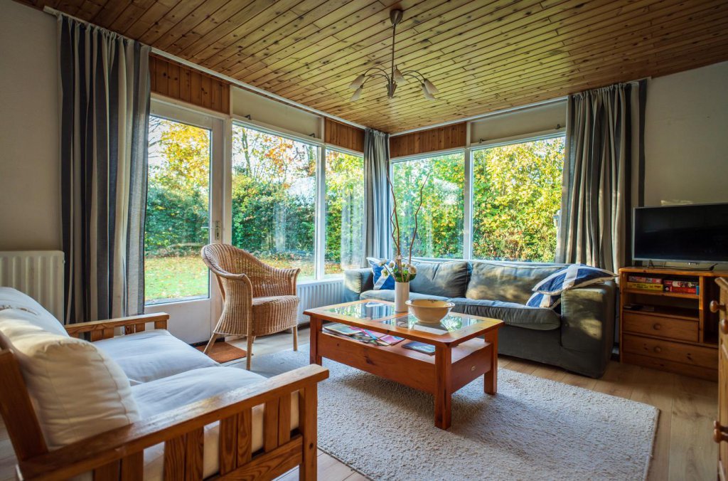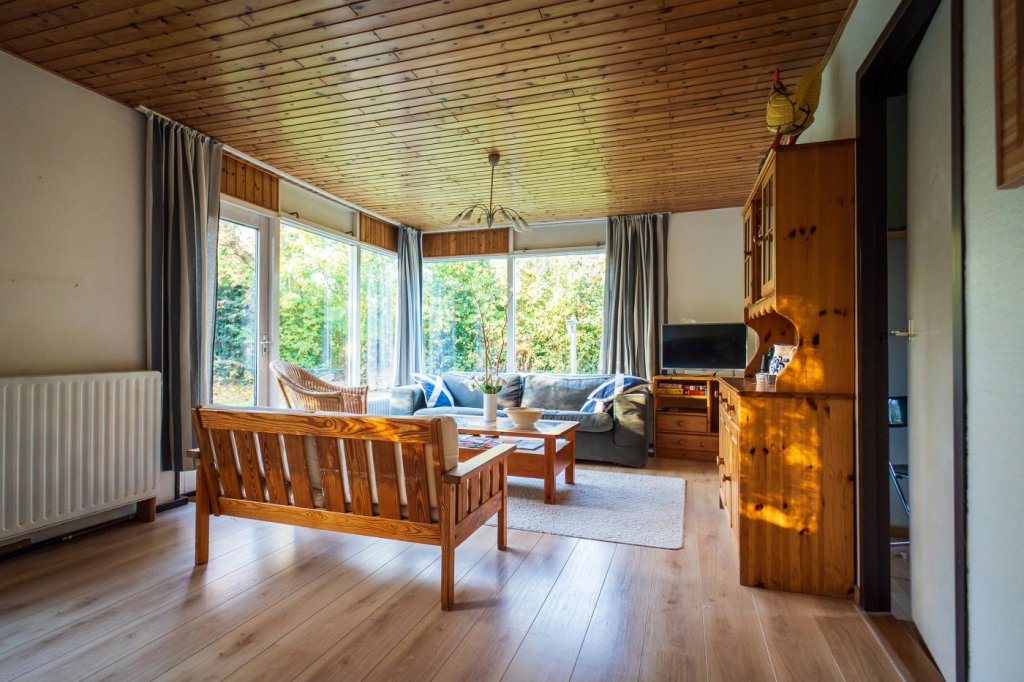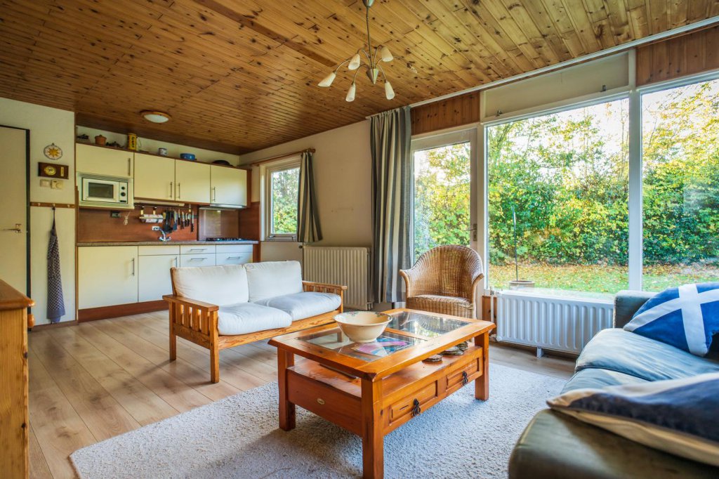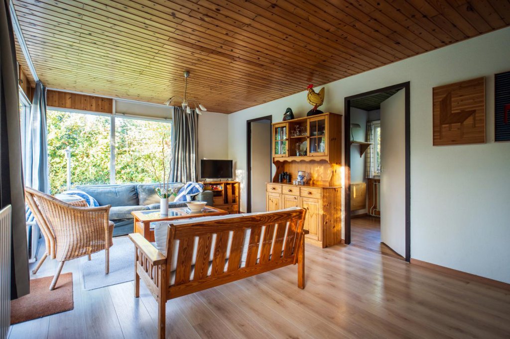 De bungalow beschikt over drie slaapkamers variërend in grootte. De woonkamer is door de grote ramen erg licht en heeft een deur naar het terras. Er is een open keuken aanwezig. De entree is aan de voorzijde en geeft onder andere toegang tot de sanitaire ruimte met douche, wastafel en toilet. Aangebouwd treft u een stenen berging met ruimte voor fietsen en tuingereedschap en dergelijke. Ook is hier de centrale verwarmingsketel gesitueerd.