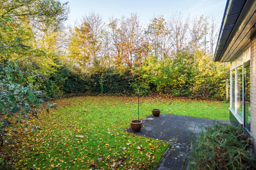 Aan de voorzijde van het perceel is een parkeermogelijkheid op eigen terrein. Via een klein paadje komt u in de tuin van de bungalow. De tuin is voorzien van een terras en veel groen met gazon en diverse boomsingels. Verder is de kavel omzoomd met op sommige stukken een metersbrede bosschage. Een droom voor degene die van privacy houdt.